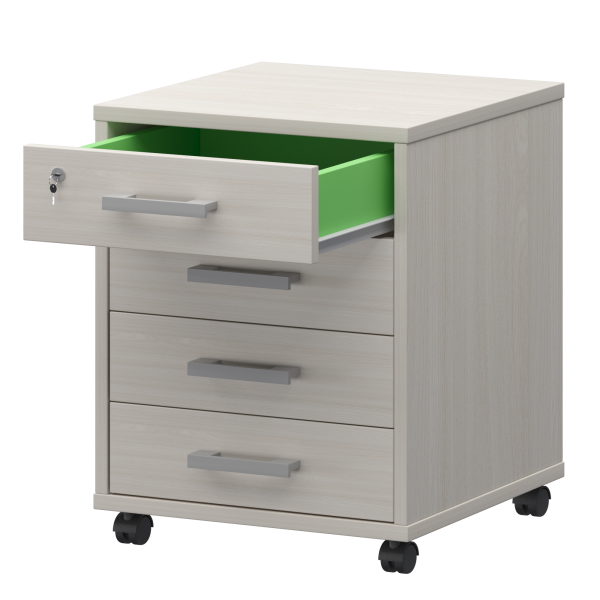 Тумба подкатная Арго АТЛ-04 Ясень шимо 440x450x600 Тумбы серии АРГО отлично дополнят ваш интерьер. Размер Тумбы 44х45х60 см. Тумба имеет 4 ящика с яркой внутренней отделкой. А также 4 колесика для мобильности. Верхний ящик оснащен замком для сохранности особо ценных вещей и документов.