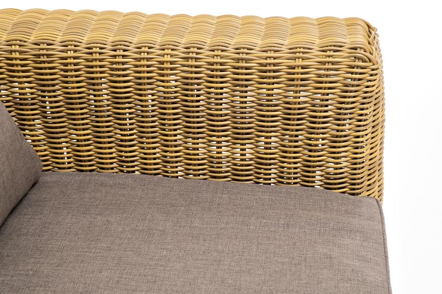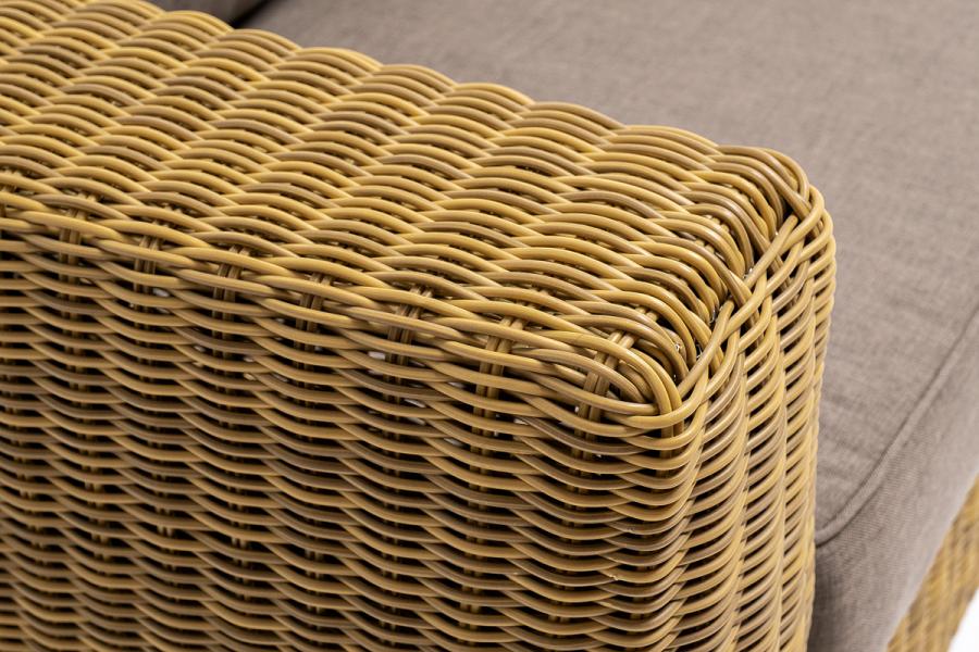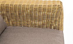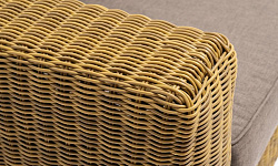 Ручное круглое плетение является основным декоративным элементом мебели. Оно выполнено из искусственного ротанга в соломенном цвете.