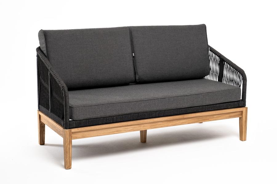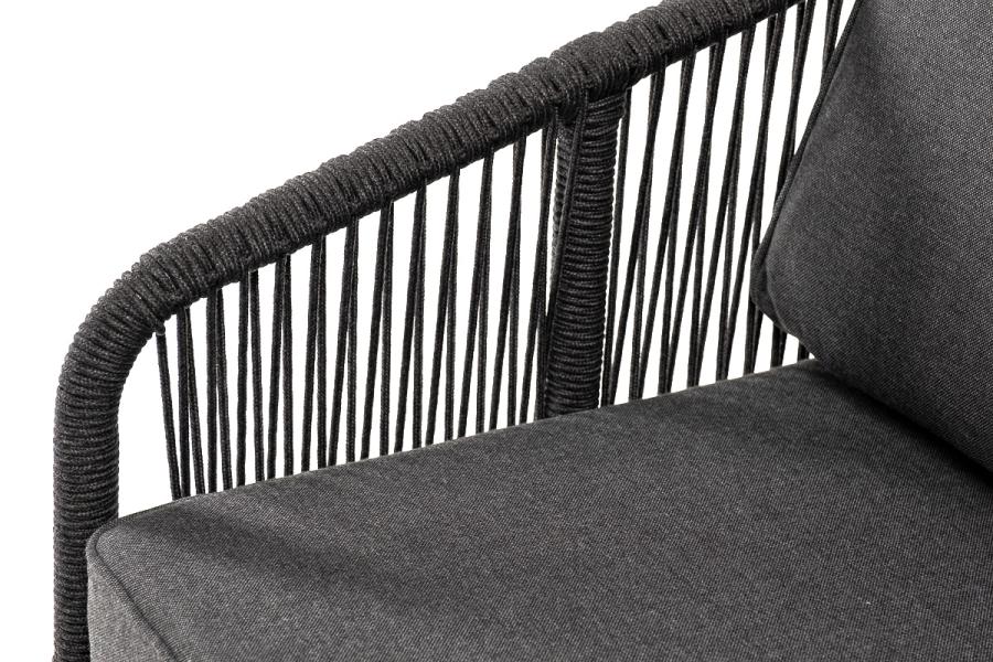 Двухместный диван «Канны» плетеный коричневым роупом - эластичными синтетическими лентами, выполненными из полиэфирных волокон.