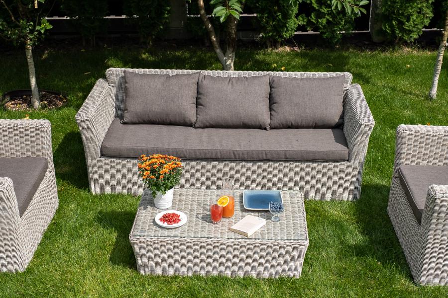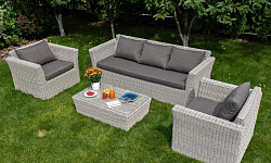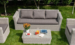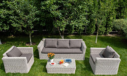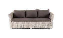 Размеры модели: 2220×865×815 мм, которые позволяют разместить трех человек. Подушки, входящие в комплект, выполнены из высококачественного полиэстера с влагоотталкивающей пропиткой.