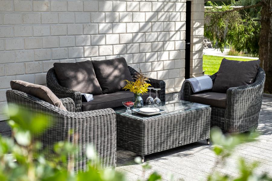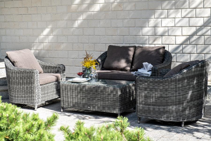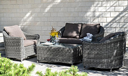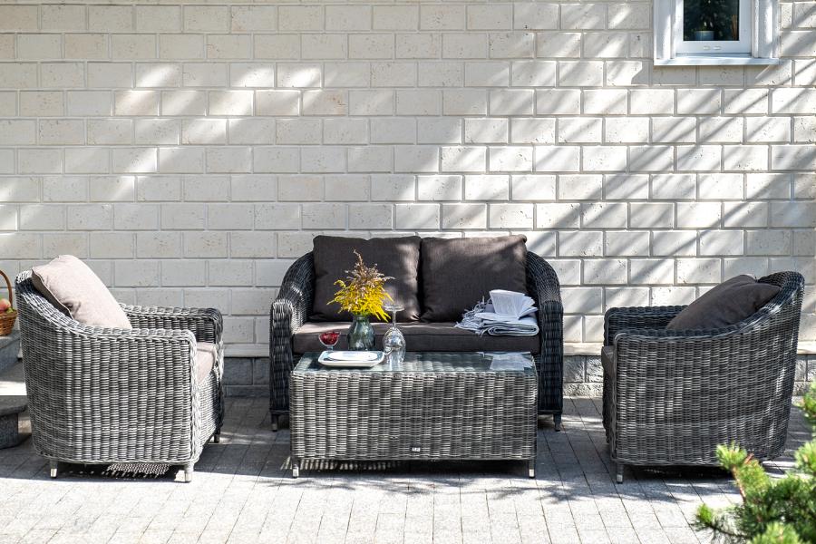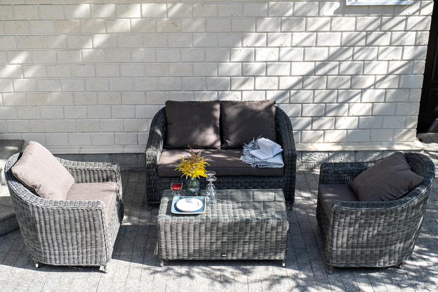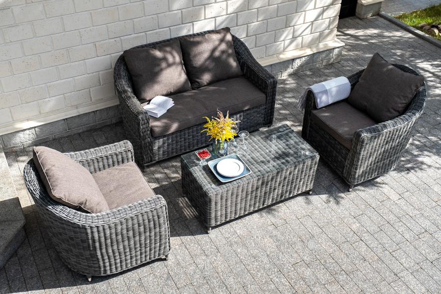 При производстве садового дивана был использован прочный алюминиевый каркас, который вручную оплетен круглым искусственным ротангом.