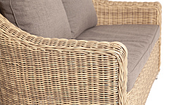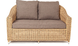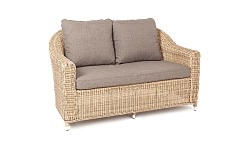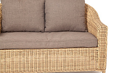 Диван из искусственного ротанга соломенного цвета «Кон Панна» дает возможность комфортно расположить две персоны благодаря комплектным подушкам из полиэстера с влагоотталкивающей пропиткой.