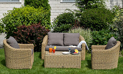 При производстве садового дивана был использован прочный алюминиевый каркас, который оплетен вручную искусственным ротангом.