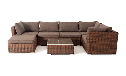 Основа выполнена из алюминиевого каркаса, декорированного вручную оплеткой коричневого цвета. Комплектацией предусмотрены подушки, выполенные из полиэстера с влагоотводящей пропиткой.