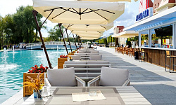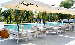 В комплекте - подушки со съёмными чехлами из 100%-го полиэстера, плотностью 300гр/м2. Ткань имеет влагоотталкивающую пропитку.
