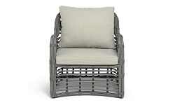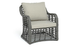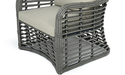 Каркас мебели сделан из прочного алюминия с высокими эксплуатационными качествами. Оплетен вручную с помощью круглого искусственного ротанга. Представлено в сером оттенке.