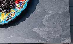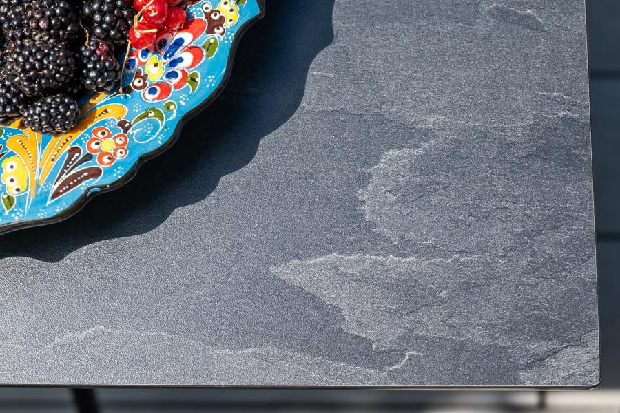 Состоит из квадратного обеденного стола «Конте» со столешницей, размером 70×70 см. Материал столешницы выполнен из высококачественного монолитного компакт-пластика HPL в цвете «серый гранит». Подстолье - нержавеющая сталь черного цвета.