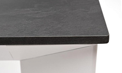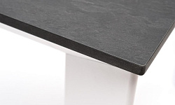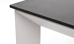 Столешница выполнена из современного высококачественного монолитного компакт-пластик HPL, толщиной 12 мм в цвете «серый гранит». Материал устойчив к высоким температурам, попаданию влаги и может использоваться как в помещении, так и на открытом пространстве. Подстолье изготовлено из крашеного алюминия белого цвета.